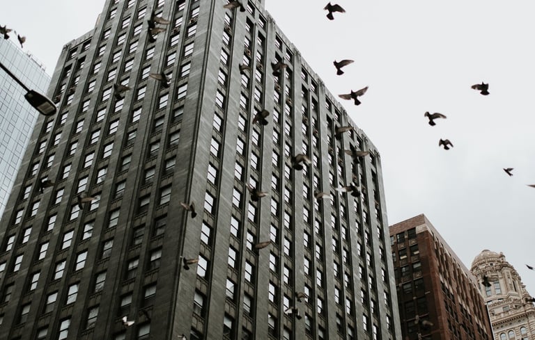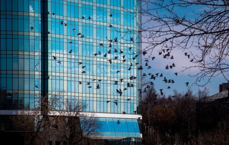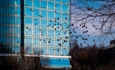 Office Buildings and Corporate Campuses - Glass façades can reflect large areas of sky and trees, creating a high-risk environment for migrating and resident birds.